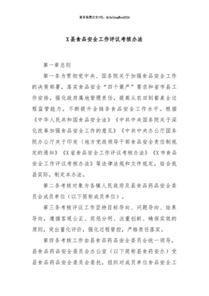 【七哥公文】2024年:X县食品安全工作评议考核办法+更多免费公文+VX:QiGeGongWen2024