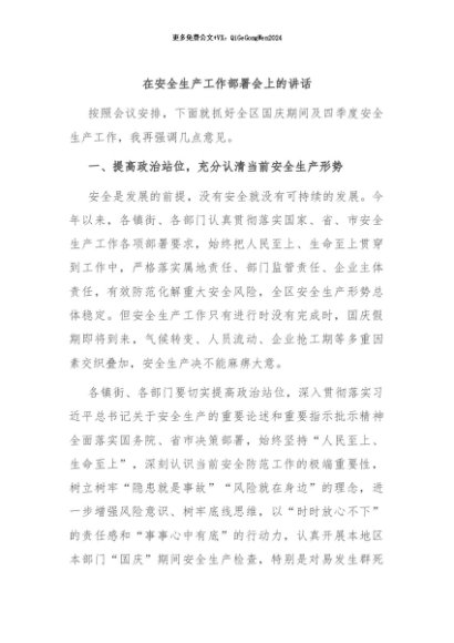 / 【七哥公文】2024年:在安全生产工作部署会上的讲话+更多免费公文+VX:QiGeGongWen2024