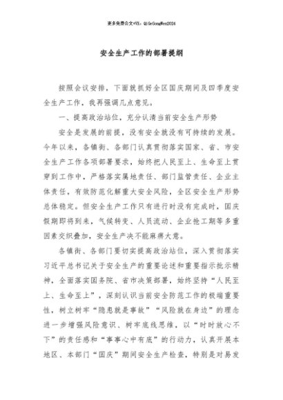 / 【七哥公文】2024年:安全生产工作的部署提纲+更多免费公文+VX:QiGeGongWen2024