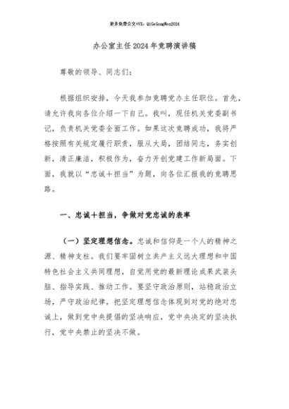 / 【七哥公文】2024年:办公室主任2024年竞聘演讲稿+更多免费公文+VX:QiGeGongWen2024