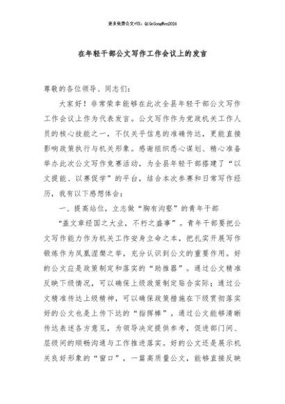 / 【七哥公文】2024年:在年轻干部公文写作工作会议上的发言+更多免费公文+VX:QiGeGongWen2024