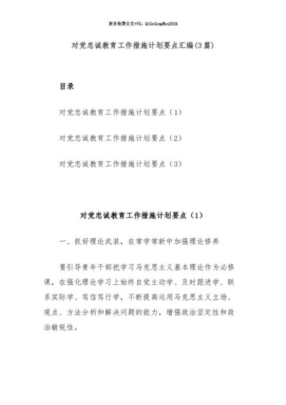 / 【七哥公文】2024年:(3篇)对党忠诚教育工作措施计划要点汇编+更多免费公文+VX:QiGeGongWen2024