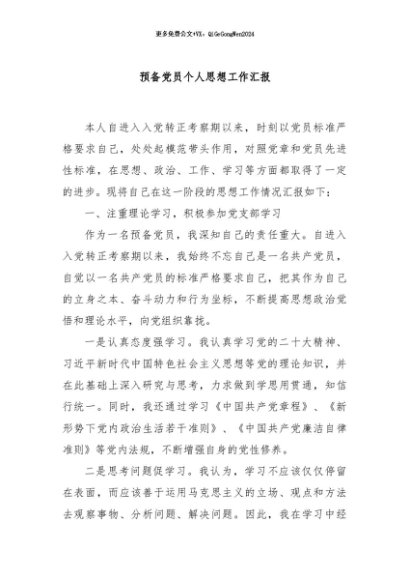 / 【七哥公文】2024年:预备党员个人思想工作汇报+更多免费公文+VX:QiGeGongWen2024