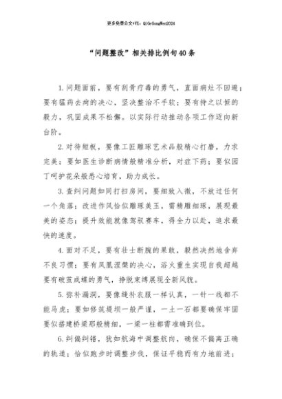 / 【七哥公文】2024年:“问题整改”相关排比例句40条+更多免费公文+VX:QiGeGongWen2024