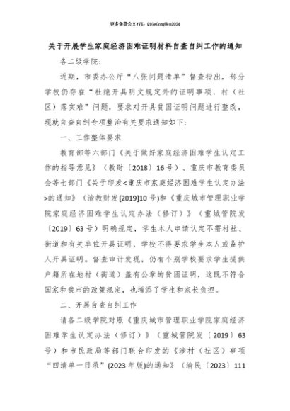 【七哥公文】2024年:关于开展学生家庭经济困难证明材料自查自纠工作的通知+更多免费公文+VX:QiGeGongWen2024