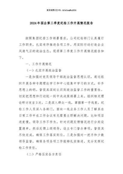 / 【七哥公文】2024年:2024年国企第三季度纪检工作开展情况报告+更多免费公文+VX:QiGeGongWen2024