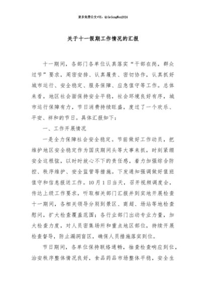 / 【七哥公文】2024年:关于十一假期工作情况的汇报+更多免费公文+VX:QiGeGongWen2024