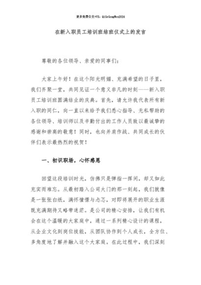 / 【七哥公文】2024年:在新入职员工培训班结班仪式上的发言+更多免费公文+VX:QiGeGongWen2024