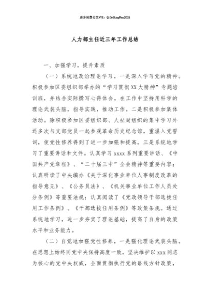 / 【七哥公文】2024年:人力部主任近三年工作总结+更多免费公文+VX:QiGeGongWen2024