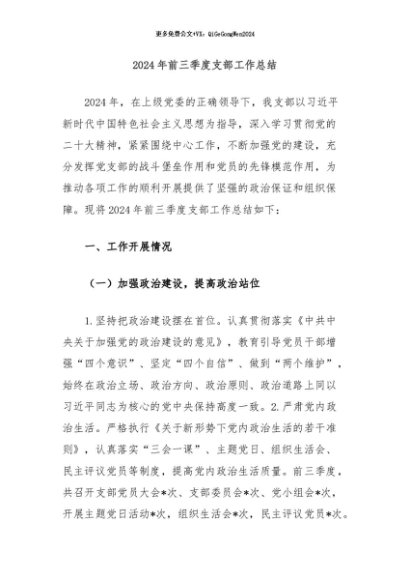 / 【七哥公文】2024年:2024年前三季度支部工作总结+更多免费公文+VX:QiGeGongWen2024