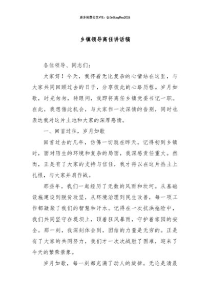/ 【七哥公文】2024年:乡镇领导离任讲话稿+更多免费公文+VX:QiGeGongWen2024