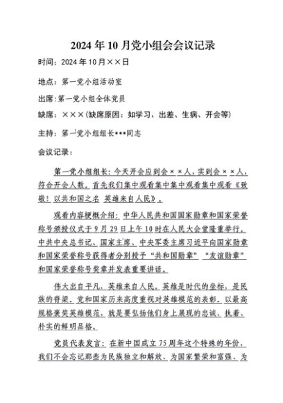/ 【七哥公文】2024年:2024年10月党小组会会议记录+更多免费公文+VX:QiGeGongWen2024