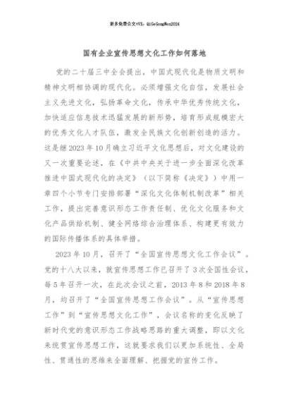 / 【七哥公文】2024年:国有企业宣传思想文化工作如何落地+更多免费公文+VX:QiGeGongWen2024