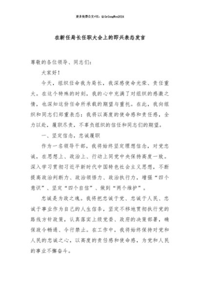 / 【七哥公文】2024年:在新任局长任职大会上的即兴表态发言+更多免费公文+VX:QiGeGongWen2024
