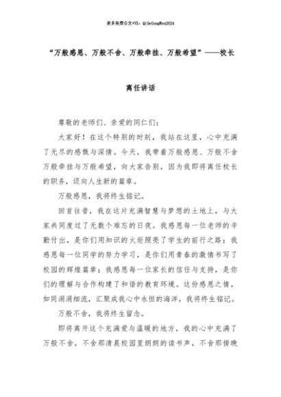 【七哥公文】2024年:“万般感恩、万般不舍、万般牵挂、万般希望”——校长离任讲话+更多免费公文+VX:QiGeGongWen2024
