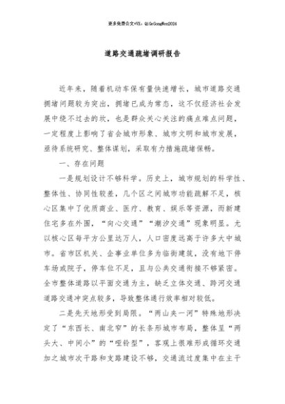 【七哥公文】2024年:道路交通疏堵调研报告+更多免费公文+VX:QiGeGongWen2024