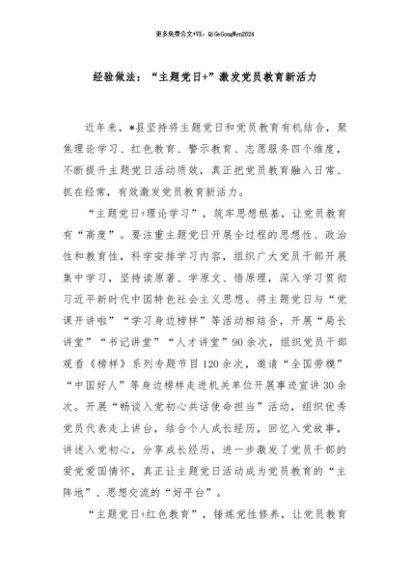 / 【七哥公文】2024年:经验做法:“主题党日+”激发党员教育新活力+更多免费公文+VX:QiGeGongWen2024