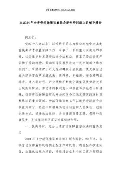【七哥公文】2024年:在2024年全市劳动保障监察能力提升培训班上的辅导报告+更多免费公文+VX:QiGeGongWen2024