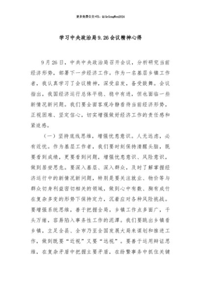 / 【七哥公文】2024年:学习中央政治局9.26会议精神心得+更多免费公文+VX:QiGeGongWen2024