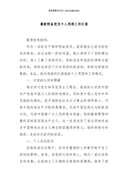 / 【七哥公文】2024年:最新预备党员个人思想工作汇报+更多免费公文+VX:QiGeGongWen2024