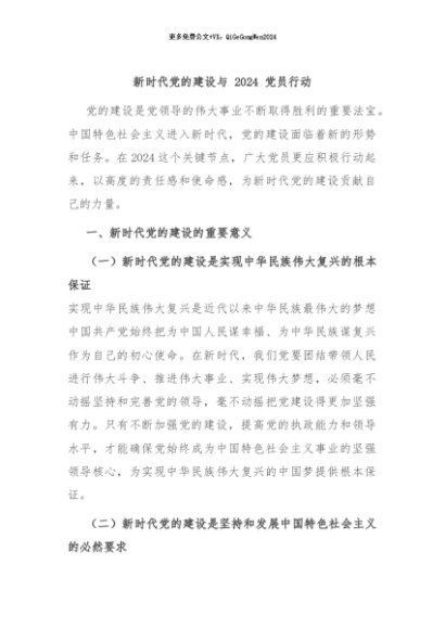 / 【七哥公文】2024年:新时代党的建设与 2024 党员行动+更多免费公文+VX:QiGeGongWen2024