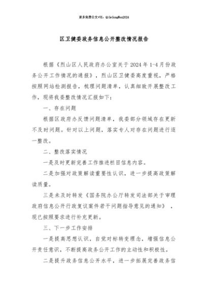 / 【七哥公文】2024年:区卫健委政务信息公开整改情况报告+更多免费公文+VX:QiGeGongWen2024