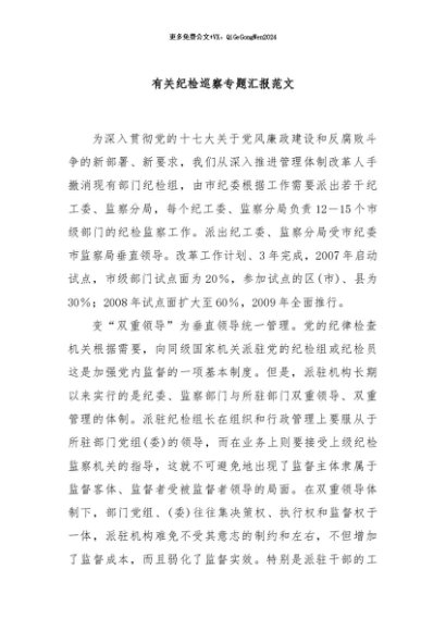 / 【七哥公文】2024年:有关纪检巡察专题汇报范文+更多免费公文+VX:QiGeGongWen2024