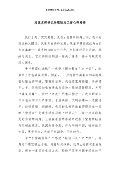 / 【七哥公文】2024年:村党支部书记助理驻村工作心得感悟+更多免费公文+VX:QiGeGongWen2024