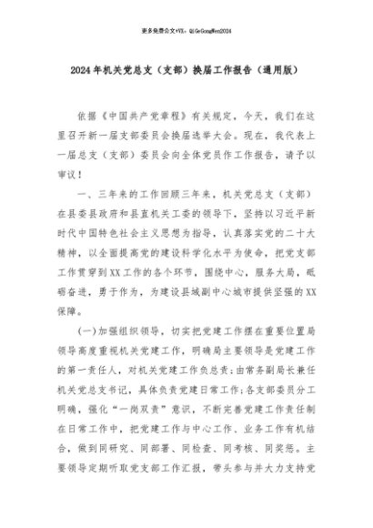 【七哥公文】2024年:2024年机关党总支(支部)换届工作报告(通用版)+更多免费公文+VX:QiGeGongWen2024