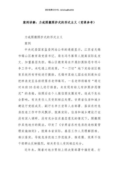 / 【七哥公文】2024年:案例讲解:力戒照搬照抄式的形式主义(党课参考)+更多免费公文+VX:QiGeGongWen2024