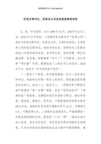 / 【七哥公文】2024年:村党支部书记、村委会主任先进典型事迹材料+更多免费公文+VX:QiGeGongWen2024