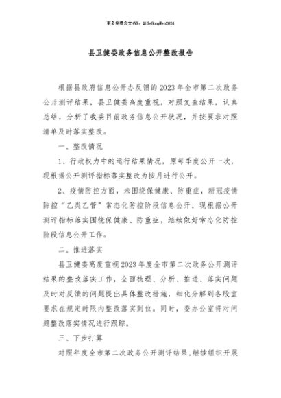 / 【七哥公文】2024年:县卫健委政务信息公开整改报告+更多免费公文+VX:QiGeGongWen2024