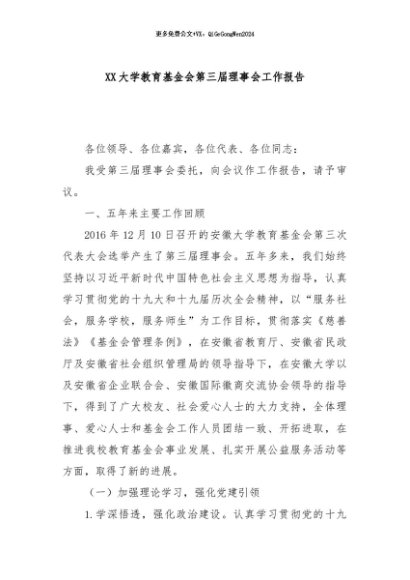 / 【七哥公文】2024年:XX大学教育基金会第三届理事会工作报告+更多免费公文+VX:QiGeGongWen2024