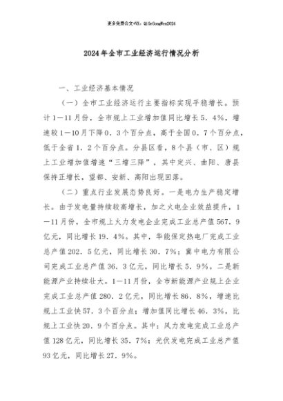 / 【七哥公文】2024年:2024年全市工业经济运行情况分析+更多免费公文+VX:QiGeGongWen2024