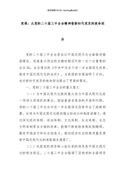 【七哥公文】2024年:党课:从党的二十届三中全会精神看新时代党员的使命担当+更多免费公文+VX:QiGeGongWen2024