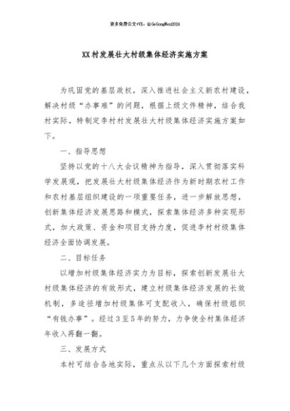 / 【七哥公文】2024年:XX村发展壮大村级集体经济实施方案+更多免费公文+VX:QiGeGongWen2024