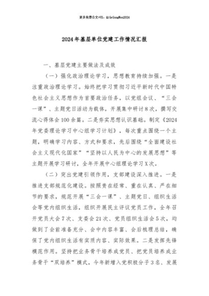 / 【七哥公文】2024年:2024年基层单位党建工作情况汇报+更多免费公文+VX:QiGeGongWen2024