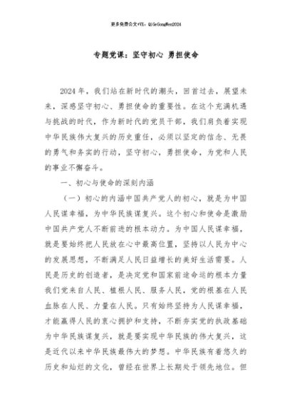 / 【七哥公文】2024年:专题党课:坚守初心 勇担使命+更多免费公文+VX:QiGeGongWen2024