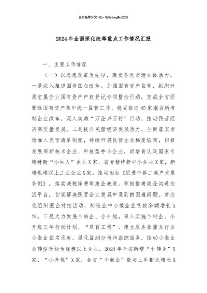 / 【七哥公文】2024年:2024年全面深化改革重点工作情况汇报+更多免费公文+VX:QiGeGongWen2024