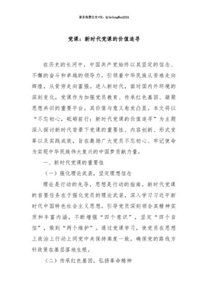 / 【七哥公文】2024年:党课:新时代党课的价值追寻+更多免费公文+VX:QiGeGongWen2024