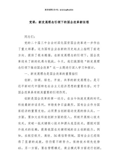 / 【七哥公文】2024年:党课:新发展理念引领下的国企改革新征程+更多免费公文+VX:QiGeGongWen2024