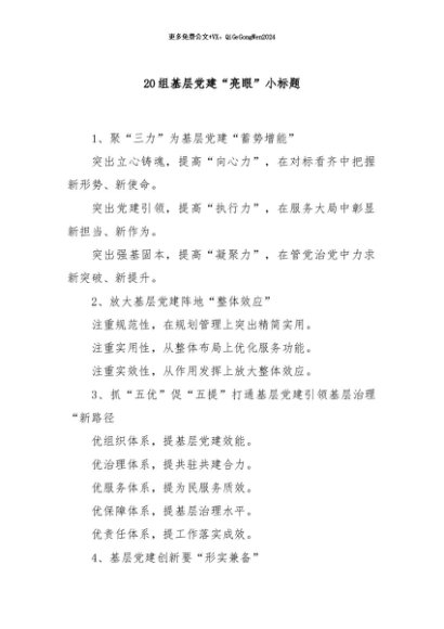 / 【七哥公文】2024年:20组基层党建“亮眼”小标题+更多免费公文+VX:QiGeGongWen2024