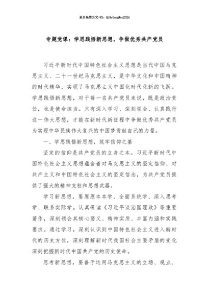 / 【七哥公文】2024年:专题党课:学思践悟新思想,争做优秀共产党员+更多免费公文+VX:QiGeGongWen2024