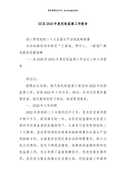 / 【七哥公文】2024年:XX区2023年度纪检监察工作报告+更多免费公文+VX:QiGeGongWen2024