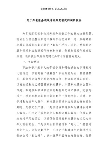 / 【七哥公文】2024年:关于养老服务领域非法集资情况的调研报告+更多免费公文+VX:QiGeGongWen2024