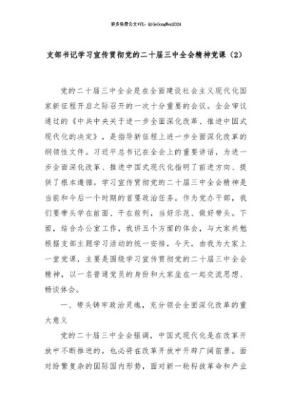 【七哥公文】2024年:支部书记学习宣传贯彻党的二十届三中全会精神党课(2)+更多免费公文+VX:QiGeGongWen2024