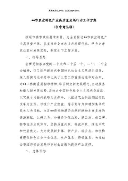 / 【七哥公文】2024年:市农业特色产业高质量发展行动工作方案+更多免费公文+VX:QiGeGongWen2024