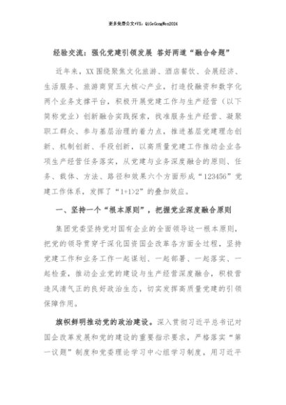/ 【七哥公文】2024年:经验交流:强化党建引领发展 答好两道“融合命题”+更多免费公文+VX:QiGeGongWen2024
