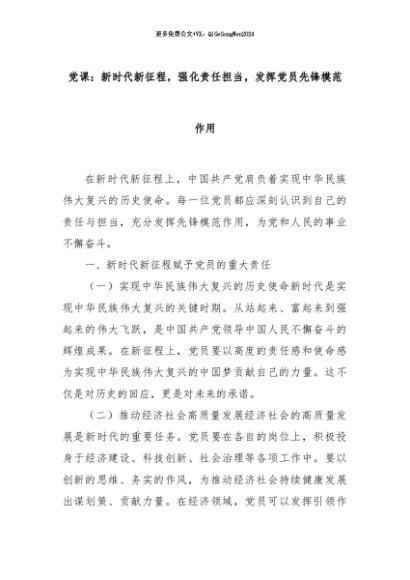 【七哥公文】2024年:党课:新时代新征程,强化责任担当,发挥党员先锋模范作用+更多免费公文+VX:QiGeGongWen2024