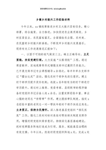 / 【七哥公文】2024年:乡镇乡村振兴工作经验材料+更多免费公文+VX:QiGeGongWen2024